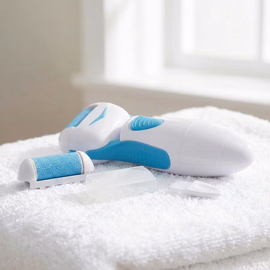 Tämä on suosittu sähkökäyttöinen jalkaraspi, jonka avulla voit tehokkaasti poistaa kovan ihon varovaisilla, pyörivillä liikkeillä. Jalkaraspin hiomapää sisältää karkeita timanttikristalleja. Se antaa optimaalisen kuorinnan ja erittäin tyydyttävän lopputuloksen. Tuote tekee jaloistasi pehmeät ja sileät. Lisäksi tuote ehkäisee halkeamien muodostumista jalkoihin. Mukana toimitetaan kaksi vaihdettavaa hiomapäätä.