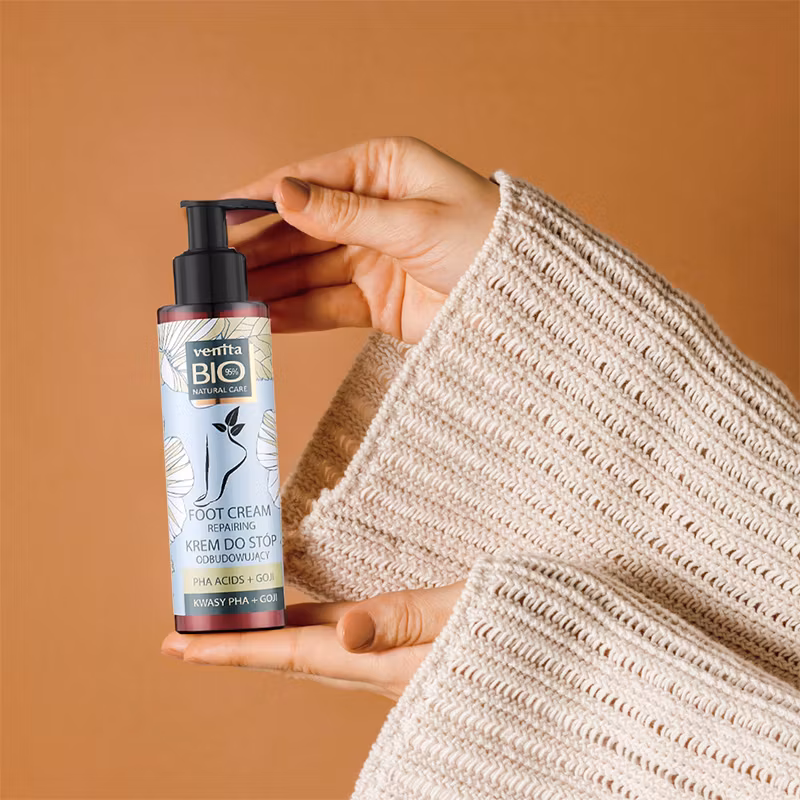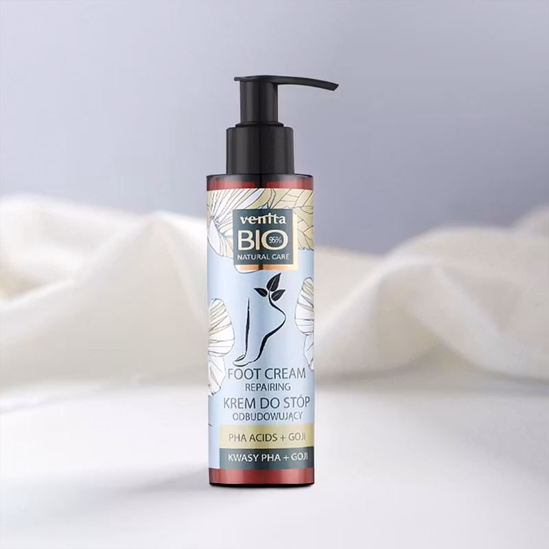 Jalkavoide sisältää PHA-happoja, jotka tunnetaan hellävaraisista kuorivista ominaisuuksistaan – ne auttavat poistamaan kuolleita ihosoluja ja tekevät ihosta pehmeämmän ja sileämmän. Gojimarjauute, joka on täynnä antioksidantteja, ravinteita ja vitamiineja, vahvistaa ja ravitsee ihoa edistäen sen hyvinvointia. Vegaaninen koostumus sopii kaikille ihotyypeille.