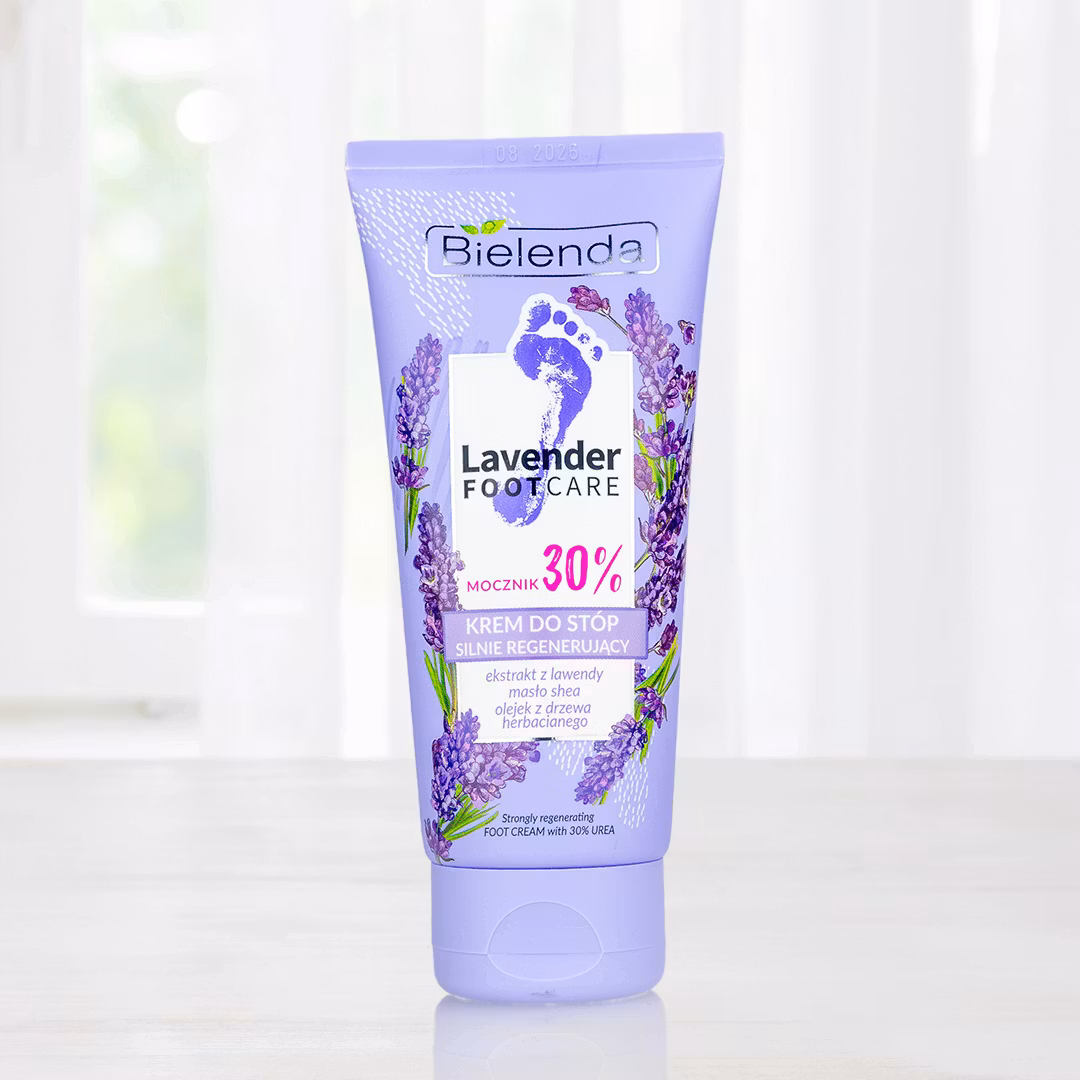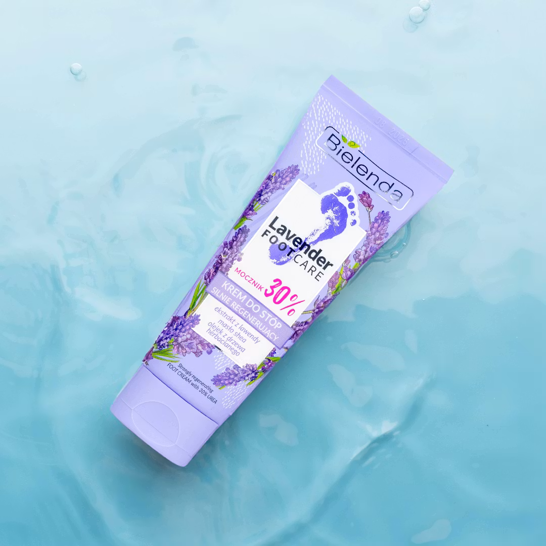 Tämä jalkavoide sisältää runsaasti ureaa, pehmentävää ainesosaa, joka vaikuttaa tehokkaasti ja syvältä, palauttaen ihon luonnollisen kosteuden ja pehmeyden. Voide ehkäisee känsien ja sarveistappien muodostumista ja kantapäiden halkeilua, antaen samalla jaloille kukkaisen laventelin tuoksun.