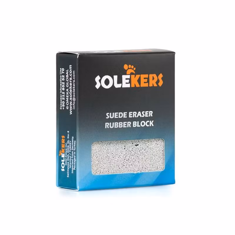 Poista ikävät ruohotahrat, asvalttijäljet tai muut ikävät tahrat nahka-, mokkanahka- tai nupukkikengistäsi. Pyyhekumi on karkearakeinen ja nostaa nahan pinnan, puhdistaen ja palauttaen sen rakenteen sekä virkistäen kiiltäviä alueita vaikuttamatta materiaalin väriin.