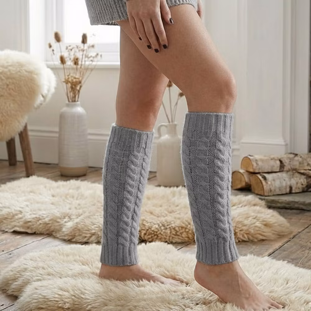 Nämä tyylikkäät harmaat säärystimet sopivat kaikenkokoisille naisten jaloille. Ne ovat 40 cm pituiset ja käsinneulotut. Näitä säärystimiä käyttämällä vältyt palelluttamasta jalkojasi. Säärystimet tarjoavat lämpöä sekä jaloille että nilkoille.