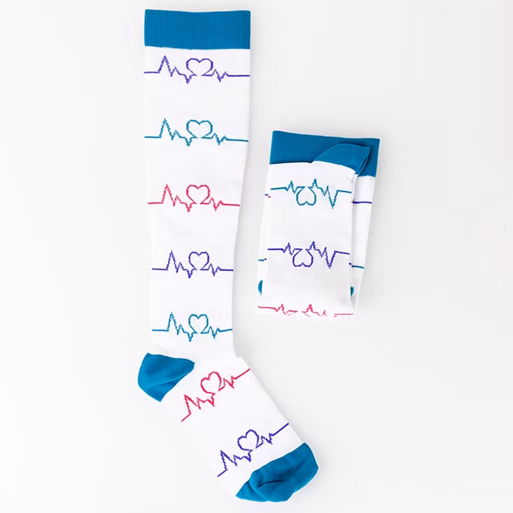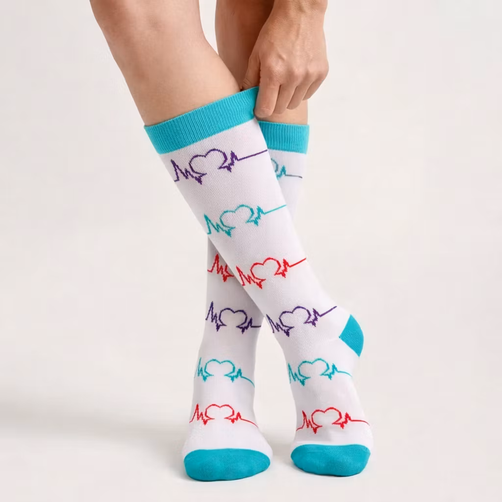 Ihastuttavat tukisukat iloisella hoitoalaan sopivalla kuva-aiheella sopivat hoitoalalla työskentelevälle. Pitkät päivät seisoma-asennossa tai runsas kävely työpäivän aikana saattavat tuntua vaativalta jaloille ja säärille. Näiden ihastuttavien tukisukkien avulla jalkasi ja sääresi saavat tervetullutta kuormituksen lievitystä.