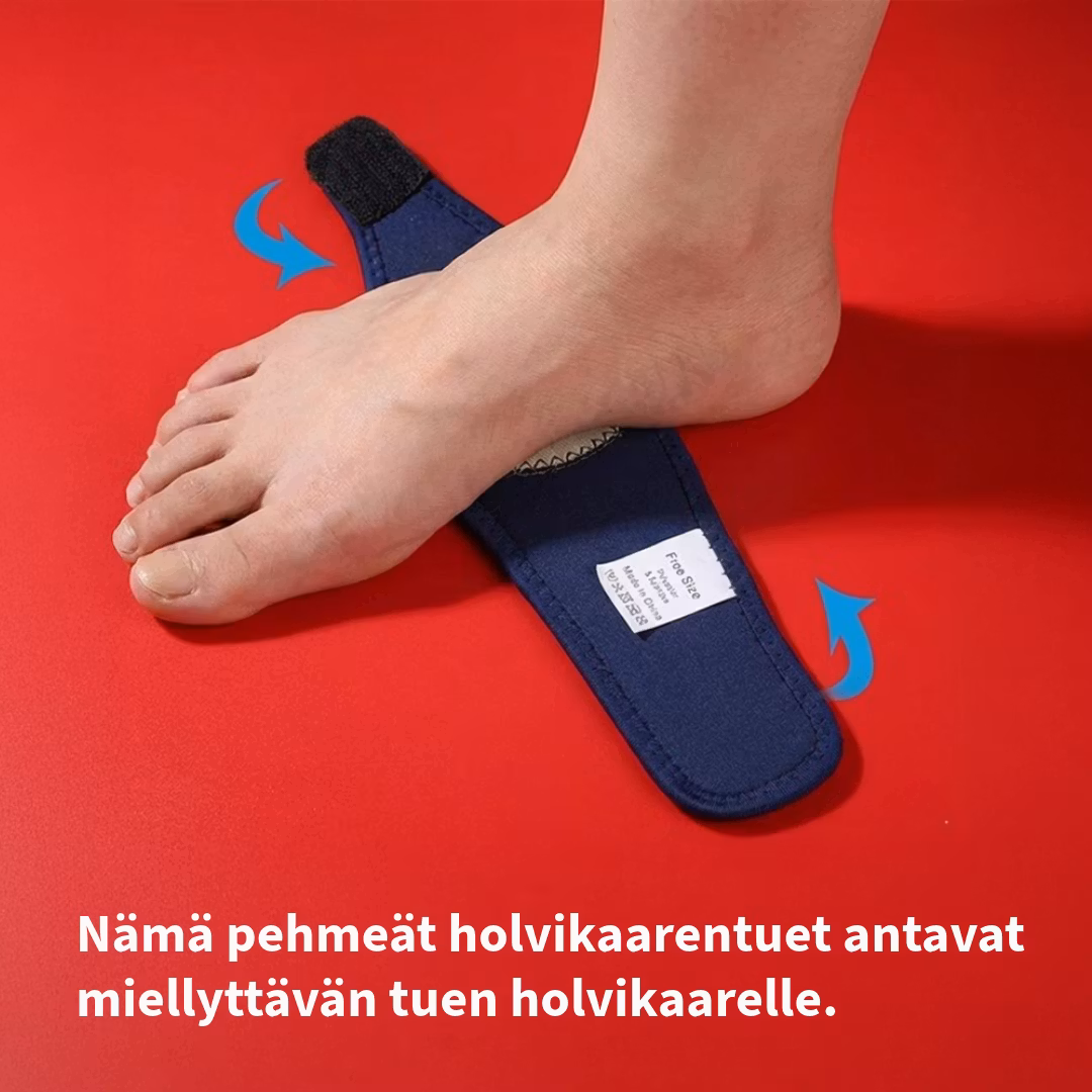 Nämä pehmeät, mukavat ja hellävaraiset jalkaholvin tuet tarjoavat vakautta ja lievittävät jalkaholveihin kohdistuvaa kuormitusta. Tukien avulla voit vähentää kipua jalkapohjissa helpolla tavalla.