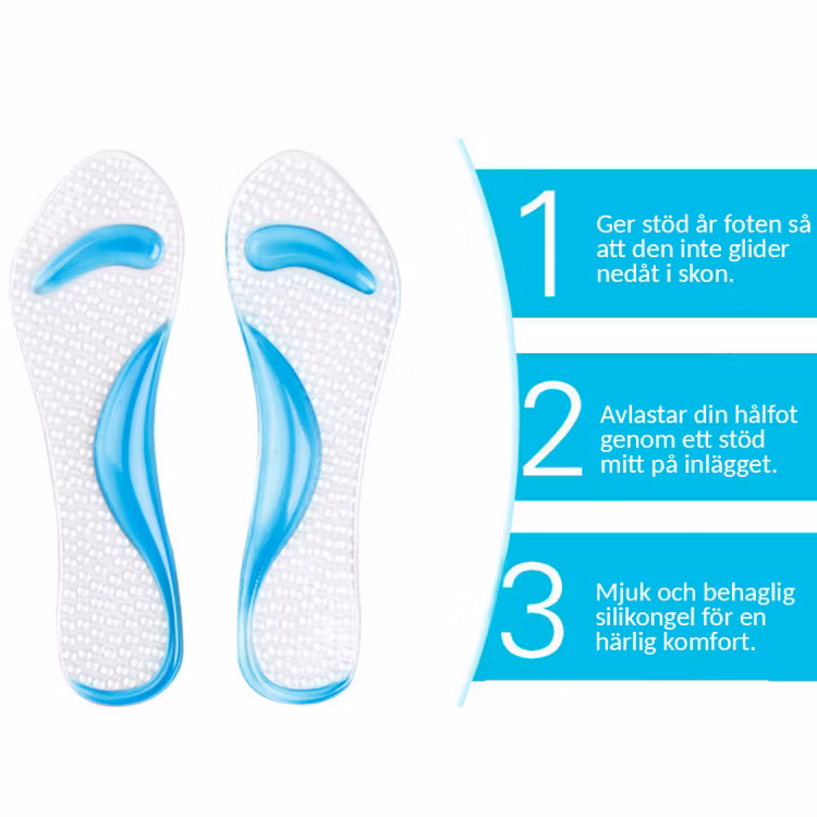 Näiden fantastisten, korkokengille suunniteltujen pohjallisten ansiosta et tule enää koskaan tuntemaan kipua jaloissasi korkokengissä juhliessasi. Pohjalliset tarjoavat erittäin hyvän vaimennuksen jalkapohjille pehmeällä geelillä, jota on sijoitettu oikeisiin kohtiin.