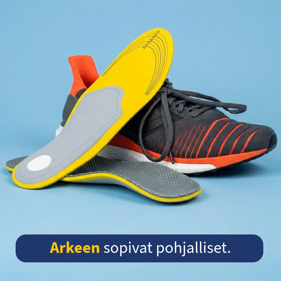 Pohjalliset iskunvaimennuksella ja jalkaholvin tuella