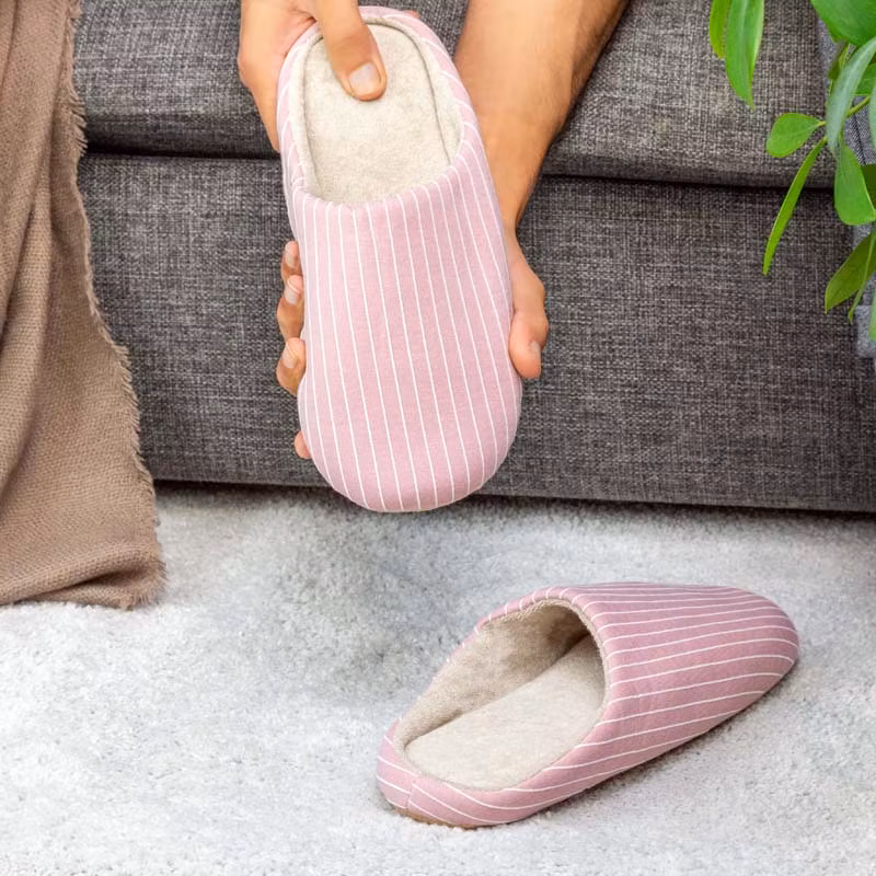 Nämä tohvelit on kätevä sekä pakata mukaan että käyttää kotona. Ne ovat tyylikkäät, eivätkä vie liikaa tilaa. Sopivat erinomaisesti koti-iltoihin tarjoamaan erityisen miellyttävän tunnun. Pehmeä vuori on erittäin mukava ja pehmeä jaloille ilman, että se tuntuu liian lämpimältä. Tämän ansiosta nämä tohvelit sopivat täydellisesti sinulle, jolle tavalliset tohvelit ovat liian lämpimät. Tohveleissa on lisäksi esteettinen muotoilu pyöristetyillä kärjillä, joten ne sopivat kaikkiin jalkoihin.