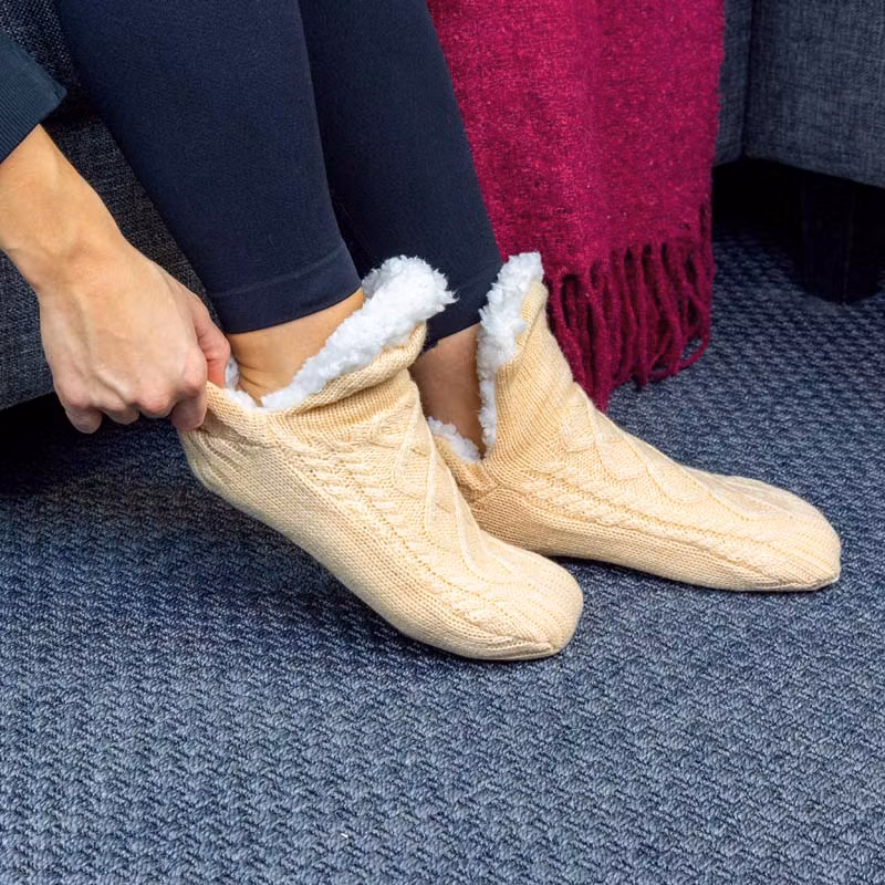 Lämpimät ja mukavat tohvelisukat (beige) Palelevatko jalkasi? Onko sinulla vaikeuksia päättää, käyttäisitkö pehmeitä ja lämpimiä sukkia vai mieluummin ihaninia tohveleita? Näiden ihanan kodikkaiden tohvelisukkien avulla sinun ei tarvitse valita! Jokainen syys- ja talvipäivä tuntuu ihanalta!